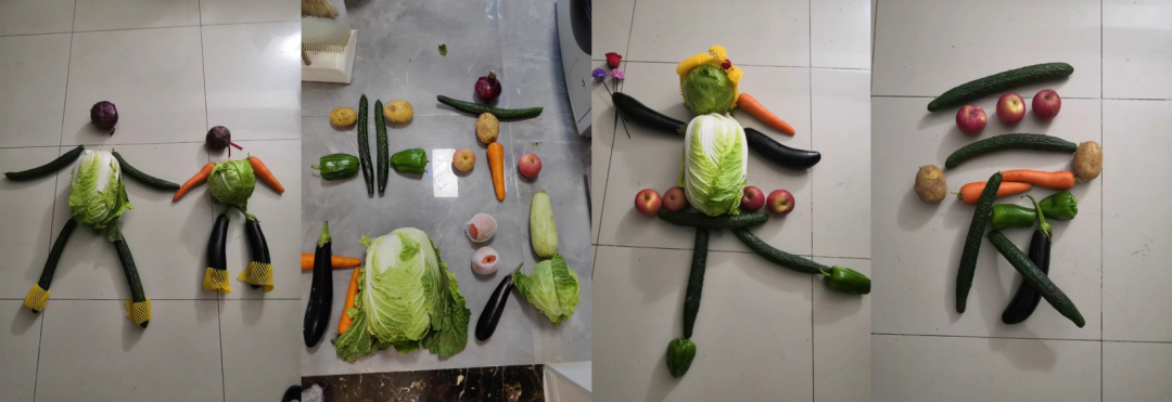 封控第二天,我们就收到政府派发的蔬菜包。邻居们纷纷摆成了各种造型分享到业主群里,给封控日子增加了不少乐趣—兰X